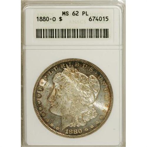 <B>1880-O $1 MS62 Prooflike ANACS.</B></I> NGC Census: (54/78). PCGS Population (47/52). Numismedia Wsl. Price for NGC/PCGS coin in MS62: $150. (#7115)<BR><BR><B>Coin Engraver:</B> George T. Morgan<BR><BR><b>Shipping:</b> Coins & Currency (<a target="_blank" href="http://www.heritageauctions.com/common/shipping.php">view shipping information</a>\)