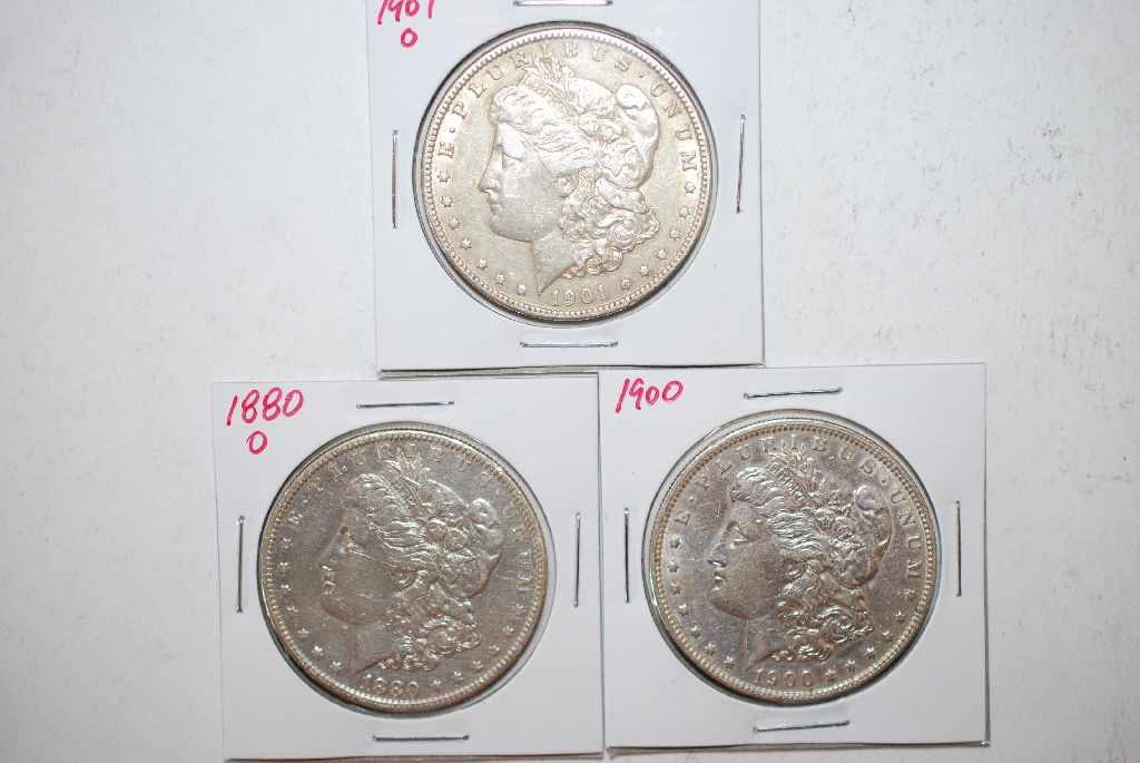 1880-O, 1900 & 1901-O Silver Morgan $1; Lot of 3; EST. $100-125