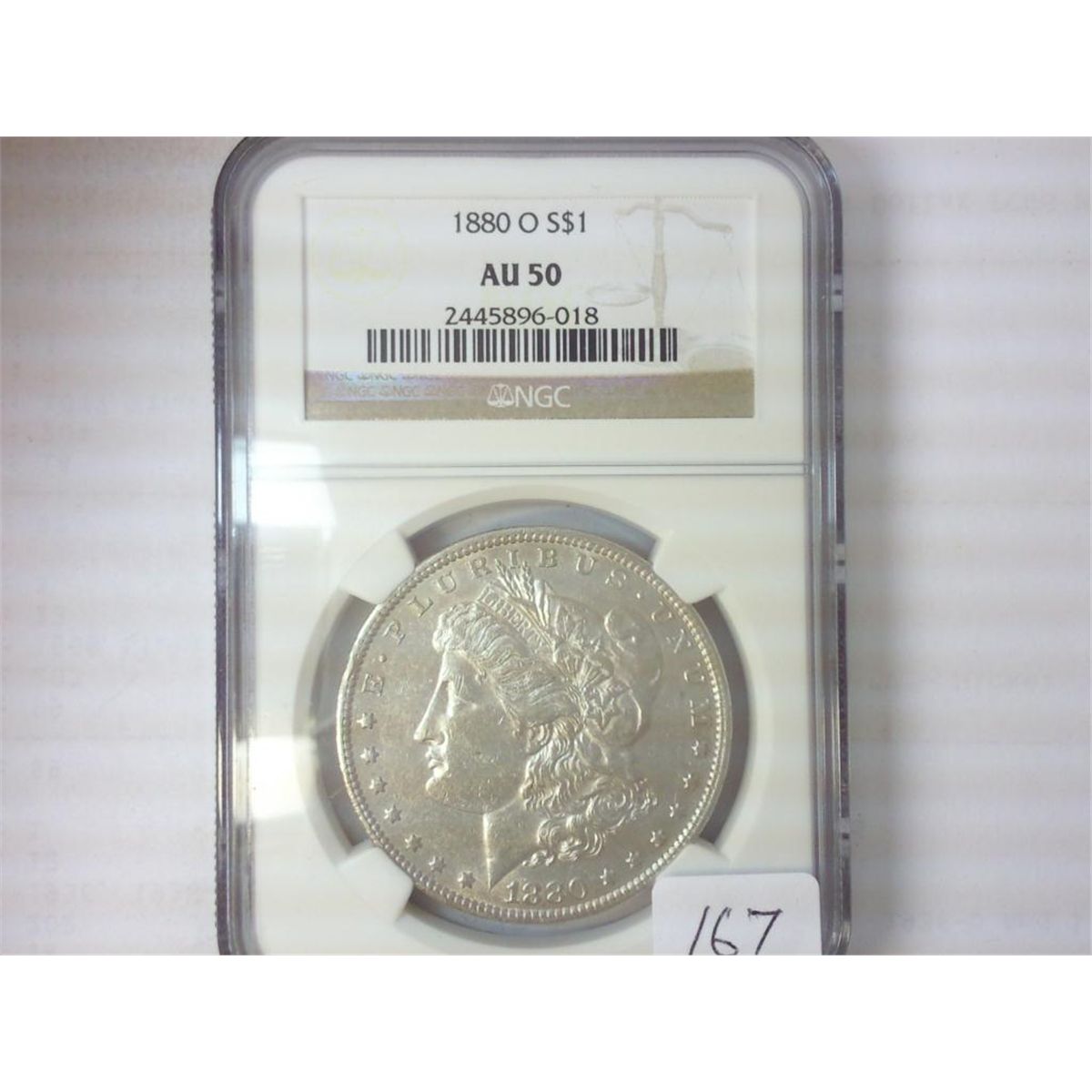 1880-O MORGAN SILVER DOLLAR NGC AU50