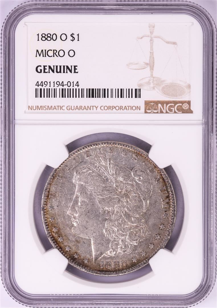 One 1880-O Micro O $1 Morgan Silver Dollar Coin NGC Genuine. NGC Certified.