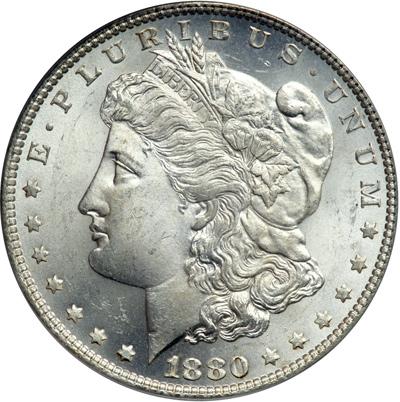 1880-O Morgan Dollar. PCGS graded MS-64. Old Green Holder. Mostly untoned. Well struck and frosty. There are always going to be collectors just yearning for a fresh frosty white specimen of 1880-O Morgan that has this sort of clean, unsullied cheek on Liberty. Give it a firm bid. Pop 1,106; 24 finer in 65 (PCGS # 7114) .