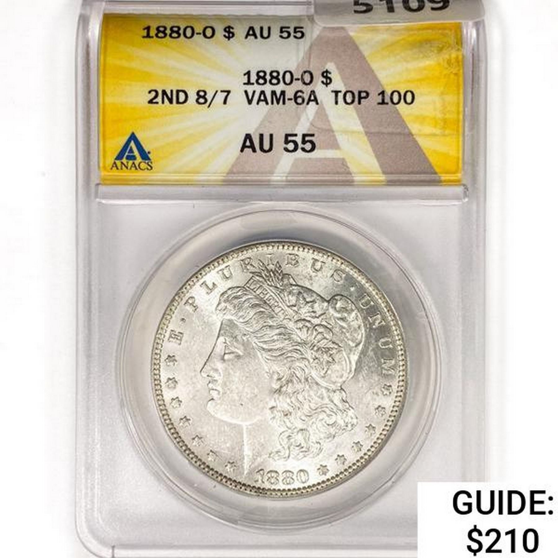 1880-O Morgan SILV $1 ANACS AU55 2ND 8/7 VAM-6A