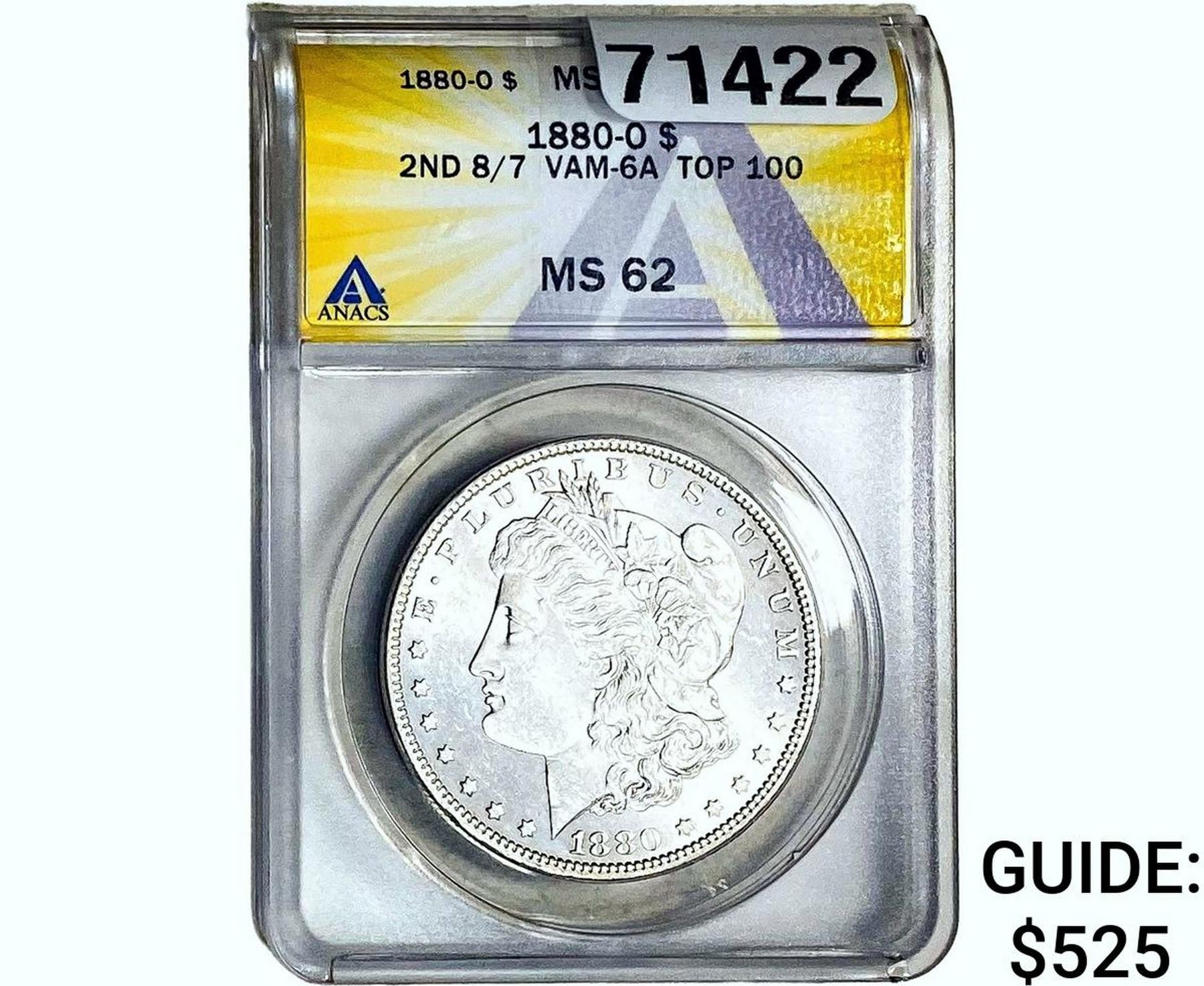 1880-O Morgan Silver Dollar ANACS MS62 8/7 VAM-6A