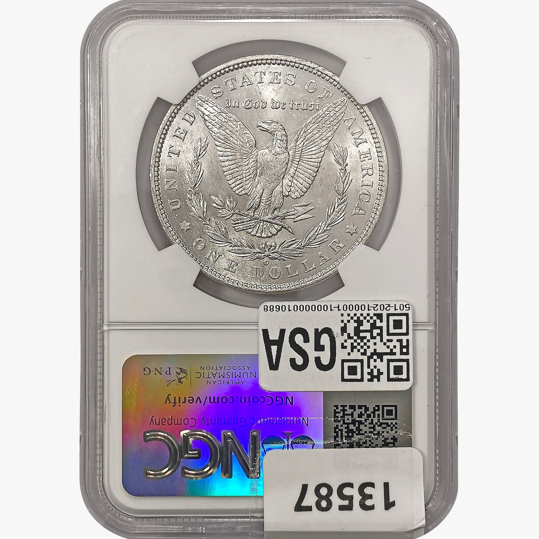 e. Coins sold referencing a third-party grading service are sold “AS IS” without any express or implied warranty, except for a guarantee by GSA that they are genuine. Removal or alteration of the holder, voids all of Bidder’s claims concerning that Product. Certain warranties may be available from the grading services and Bidders are referred to them for further details: Numismatic Guaranty Corporation (NGC), PO Box 4776, Sarasota, FL 34230, www.ngccoin.com/services/writtenguarantee.asp; Professional Coin Grading Services (PCGS), PO Box 9458, Newport Beach, CA 92658, www.pcgs.com/guarantee.html; ANACS, 6555 S. Kenton St., Ste. 303, Englewood, CO 80111; and Independent Coin Grading Co. (ICG), 7901 East Bellview, Ave., Suite 50, Englewood, CO 80111.