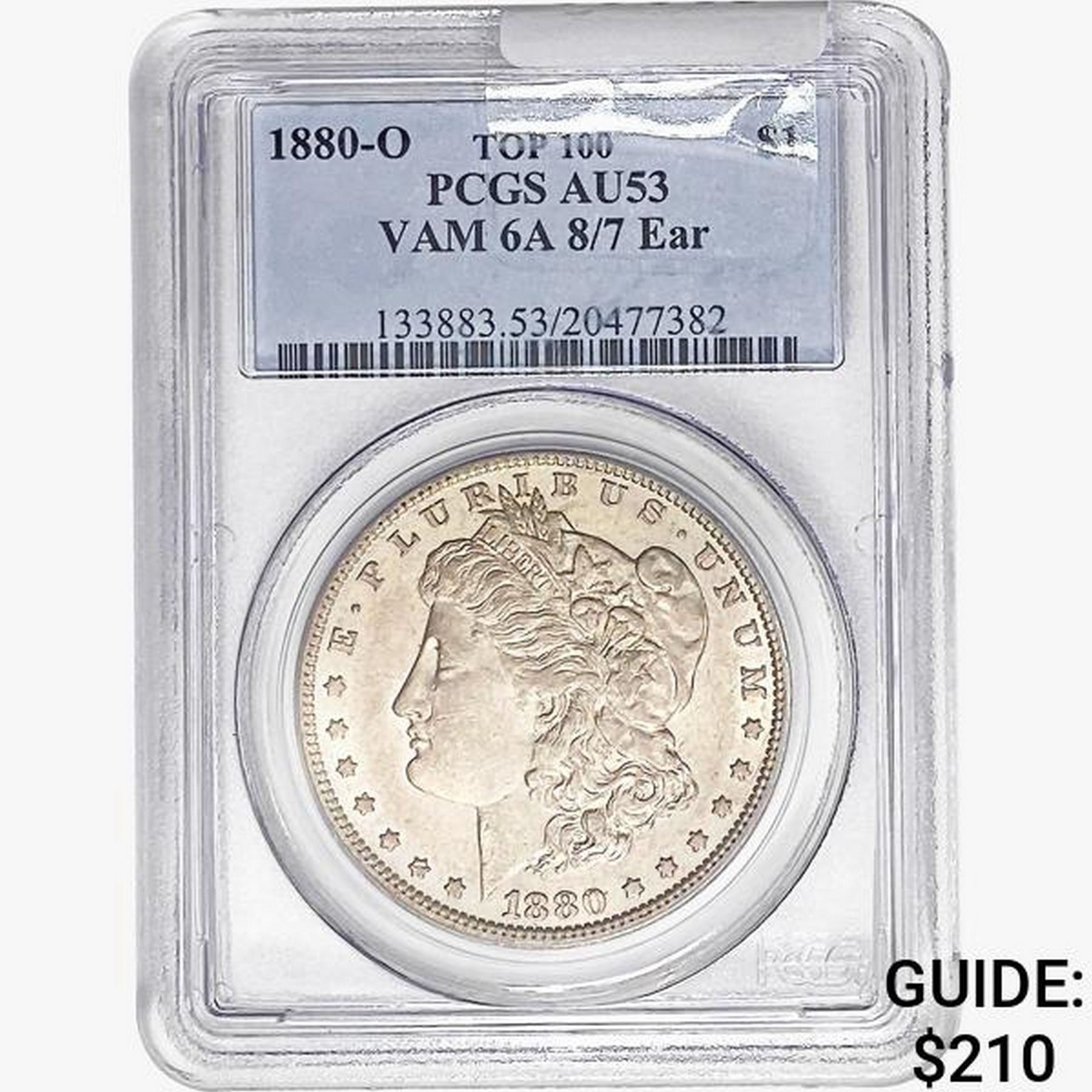 1880-O Morgan Silver Dollar PCGS AU53 VAM6A 8/7Ear