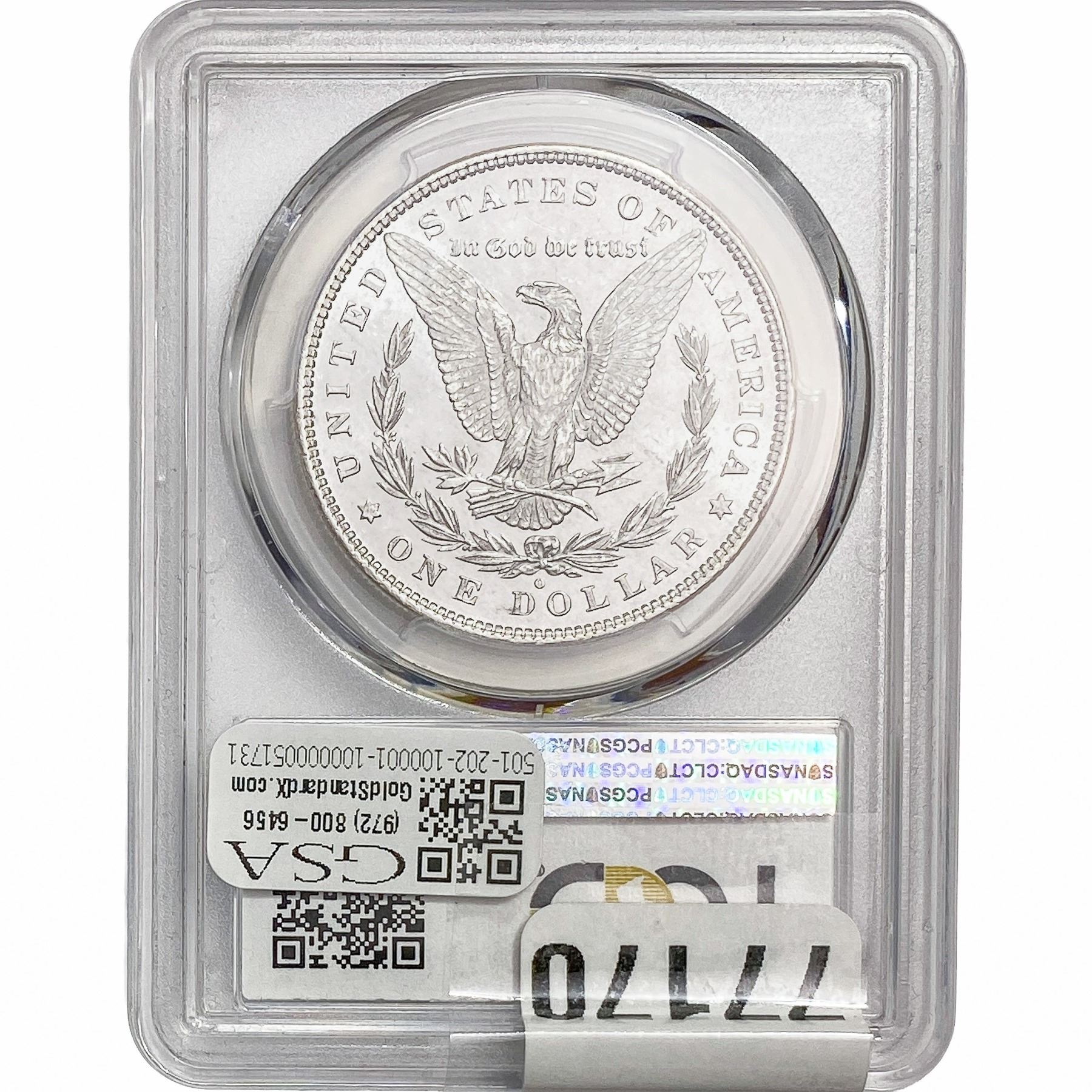 e. Coins sold referencing a third-party grading service are sold “AS IS” without any express or implied warranty, except for a guarantee by GSA that they are genuine. Removal or alteration of the holder, voids all of Bidder’s claims concerning that Product. Certain warranties may be available from the grading services and Bidders are referred to them for further details: Numismatic Guaranty Corporation (NGC), PO Box 4776, Sarasota, FL 34230, www.ngccoin.com/services/writtenguarantee.asp; Professional Coin Grading Services (PCGS), PO Box 9458, Newport Beach, CA 92658, www.pcgs.com/guarantee.html; ANACS, 6555 S. Kenton St., Ste. 303, Englewood, CO 80111; and Independent Coin Grading Co. (ICG), 7901 East Bellview, Ave., Suite 50, Englewood, CO 80111.