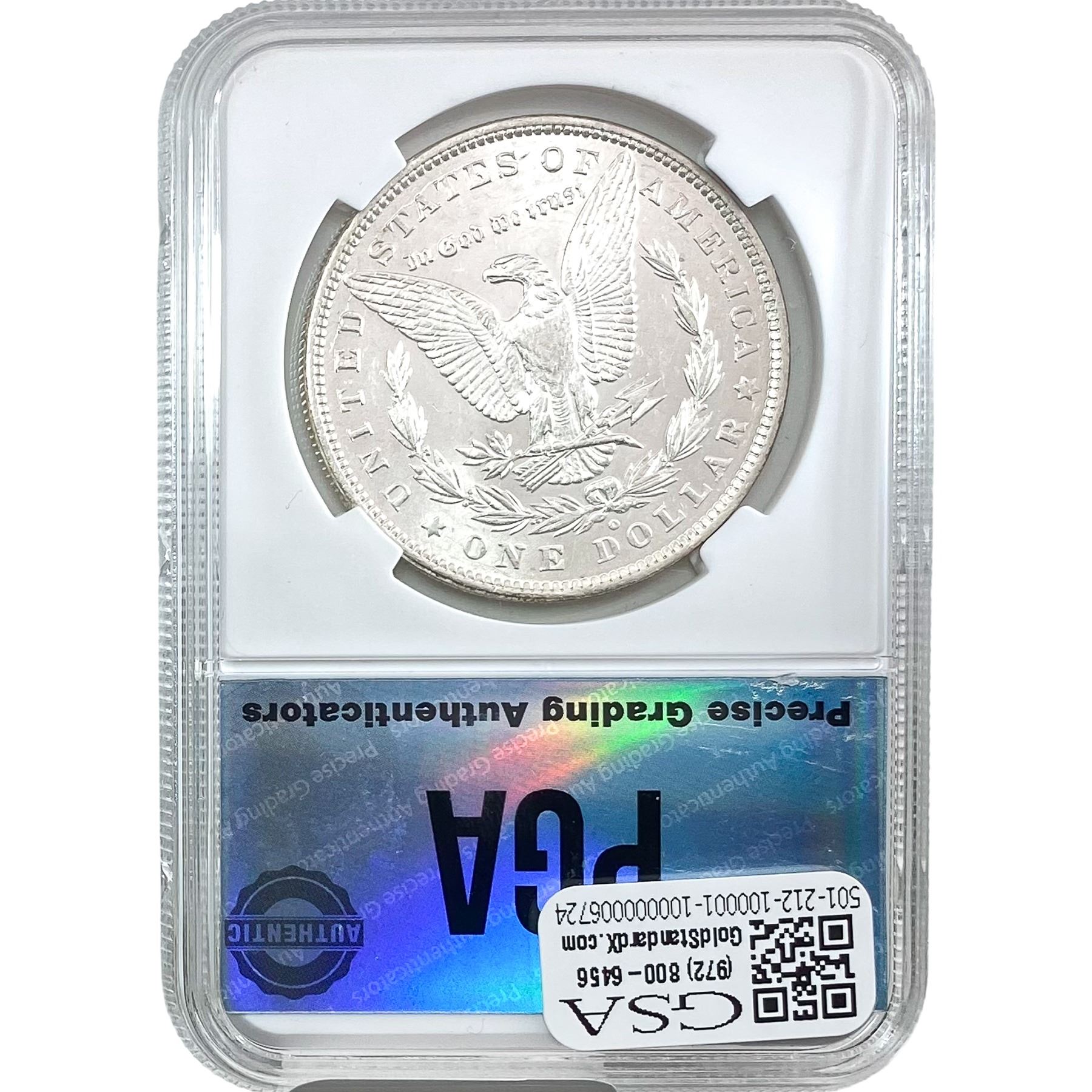 e. Coins sold referencing a third-party grading service are sold “AS IS” without any express or implied warranty, except for a guarantee by GSA that they are genuine. Removal or alteration of the holder, voids all of Bidder’s claims concerning that Product. Certain warranties may be available from the grading services and Bidders are referred to them for further details: Numismatic Guaranty Corporation (NGC), PO Box 4776, Sarasota, FL 34230, www.ngccoin.com/services/writtenguarantee.asp; Professional Coin Grading Services (PCGS), PO Box 9458, Newport Beach, CA 92658, www.pcgs.com/guarantee.html; ANACS, 6555 S. Kenton St., Ste. 303, Englewood, CO 80111; and Independent Coin Grading Co. (ICG), 7901 East Bellview, Ave., Suite 50, Englewood, CO 80111.
