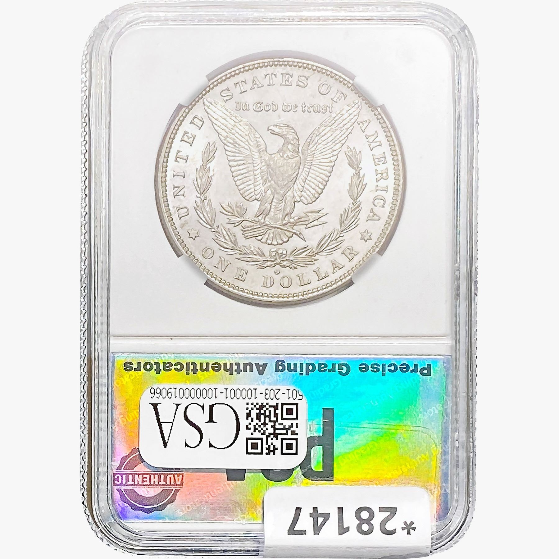 COINS AND CURRENCY LISTED IN GSA’S CATALOG AS GRADED AND ENCAPSULATED BY PCGS, NGC, ANACS, ICG, PCGS CURRENCY, PMG, PCGS BANKNOTE GRADING, CMC OR ANY OTHER THIRD-PARTY GRADING SERVICE ARE LIKEWISE SOLD “AS-IS” EXCEPT AS EXPRESSLY SET FORTH HEREIN. ALL THIRD-PARTY GRADING SERVICE GUARANTEES, INCLUDING AUTHENTICITY, ARE THE SOLE RESPONSIBILITY OF THE THIRD-PARTY GRADING SERVICE AND NOT WARRANTIES OR GUARANTEES OF GSA. BIDDERS SHOULD CONTACT THESE THIRD-PARTY GRADING SERVICES DIRECTLY WITH RESPECT TO ANY CLAIMS OR QUESTIONS THEY MAY HAVE CONCERNING THEIR GUARANTEES AND WARRANTIES. BIDDERS ACKNOWLEDGE AND AGREE THAT AUCTIONEER IS NOT BOUND BY OR LIABLE FOR ANY OPINION OR CERTIFICATION BY ANY THIRD-PARTY GRADING SERVICE. REMOVAL OF A PRODUCT FROM ITS PROTECTIVE CASING OR HOLDER OR ALTERATION OF ANY COIN HOLDER WAIVES ALL RIGHTS CONCERNING THE PRODUCT CONTAINED THEREIN.