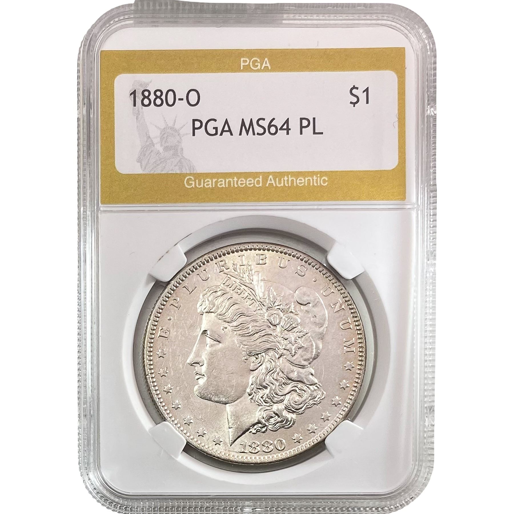 1880-O Morgan Silver Dollar PGA MS64 PL