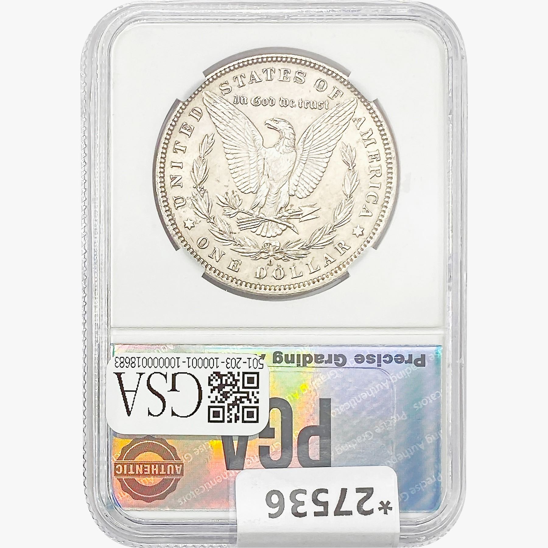 COINS AND CURRENCY LISTED IN GSA’S CATALOG AS GRADED AND ENCAPSULATED BY PCGS, NGC, ANACS, ICG, PCGS CURRENCY, PMG, PCGS BANKNOTE GRADING, CMC OR ANY OTHER THIRD-PARTY GRADING SERVICE ARE LIKEWISE SOLD “AS-IS” EXCEPT AS EXPRESSLY SET FORTH HEREIN. ALL THIRD-PARTY GRADING SERVICE GUARANTEES, INCLUDING AUTHENTICITY, ARE THE SOLE RESPONSIBILITY OF THE THIRD-PARTY GRADING SERVICE AND NOT WARRANTIES OR GUARANTEES OF GSA. BIDDERS SHOULD CONTACT THESE THIRD-PARTY GRADING SERVICES DIRECTLY WITH RESPECT TO ANY CLAIMS OR QUESTIONS THEY MAY HAVE CONCERNING THEIR GUARANTEES AND WARRANTIES. BIDDERS ACKNOWLEDGE AND AGREE THAT AUCTIONEER IS NOT BOUND BY OR LIABLE FOR ANY OPINION OR CERTIFICATION BY ANY THIRD-PARTY GRADING SERVICE. REMOVAL OF A PRODUCT FROM ITS PROTECTIVE CASING OR HOLDER OR ALTERATION OF ANY COIN HOLDER WAIVES ALL RIGHTS CONCERNING THE PRODUCT CONTAINED THEREIN.