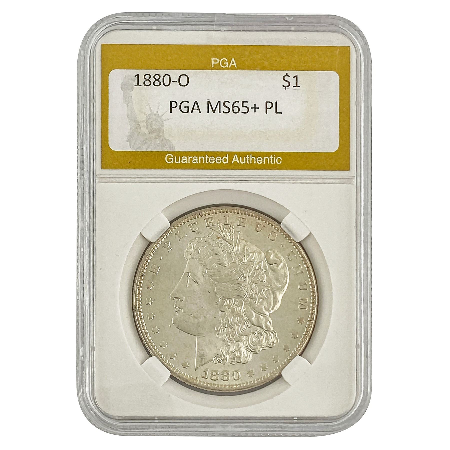 1880-O Morgan Silver Dollar PGA MS65+ PL