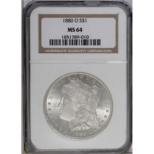1880-O S$1 MS64 NGC. Brilliant and somewhat prooflike,