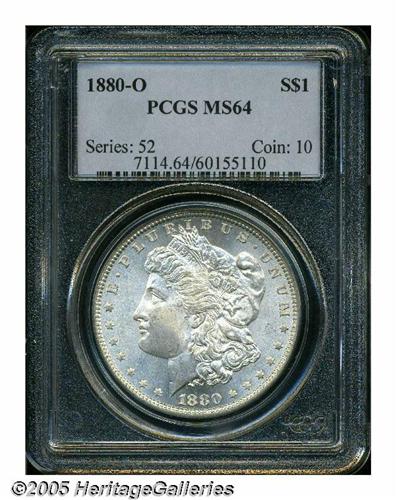 <B>1880-O<S$1> MS64 PCGS.</B></I> Micro O. Well struck, lustrous, and untoned, with minimally marked surfaces that have a slightly distracting milling mark at the corner of Liberty's mouth. A highly attractive near-Gem.