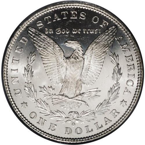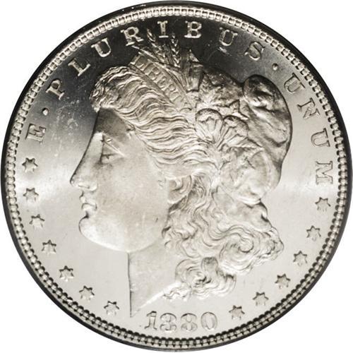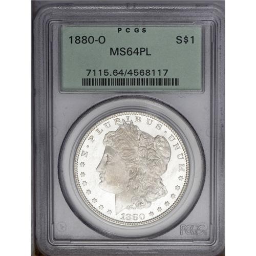 <B>1880-O<img border='0' src='http://www.heritagecoins.com/images/star.gif' width=10 height=10>$1> MS64 Prooflike PCGS.</B></I> Untoned with an appreciable degree of contrast between the chalk-white features and glassy fields. Although occasionally found with prooflike qualities, very few 1880-O dollars have the added advantage of Choice surfaces. Population: 18 in 64 Prooflike, 1 finer (3/06).<BR><I>From The David L. Goodwin Collection.</B></I> <BR><BR><B>Important notice:</B> Heritage usually auctions material at the rate of 200-250 lots per hour. On some occasions eBay Live bid software or the Internet may not be able to keep up with the pace of the auction. We recommend placing a realistic absentee bid now as insurance to avoid disappointment. Occasionally the auctioneer may eliminate or reject an eBay Live bid, and the auctioneer may also reopen a lot after the close of the eBay live bidding (usually because we missed an audience bid), and may reject your bid even if it shows you as the winning bidder. By bidding via eBay Live, you agree that Heritage may award the lot to another bidder at its sole discretion under the circumstances described above or any other reasonable circumstances. Since eBay bids are not shown to us until we open the lot on the floor, we treat those bids just like floor bids. In most cases the floor responds before the eBay bid is presented to us, due to Internet lag time, so for consistency we have made it a policy that floor bids are always considered first over tie eBay live bids. Also please note that all Heritage lots purchased through eBay Live carry a 20% Buyer's Premium. Please make sure you read the Terms and Conditions before you bid. This lot is being auctioned in conjunction with a live floor auction by Heritage Galleries & Auctioneers. All final auction and invoice information will be supplied by Heritage Galleries & Auctioneers, and all other information should be considered preliminary. Lot:3283 <BR><BR><B>Winning Notification and Billing:</B> After the FINAL session in this auction is complete, Heritage will send e-mail and snail mail invoices. This process normally takes several days. All final auction and invoice information will be supplied by Heritage Galleries & Auctioneers, and all other information should be considered preliminary. <BR><BR>This auction will be conducted on a live auction floor and over the Internet through eBay Live. If you choose to place an absentee bid, please take a moment to <font color='#0000ff'><u><a href='http://pages.ebay.com/liveauctions/help/before/laabsentee.html'>learn how eBay Live absentee bidding works</a></u></font><font color='#000000'>