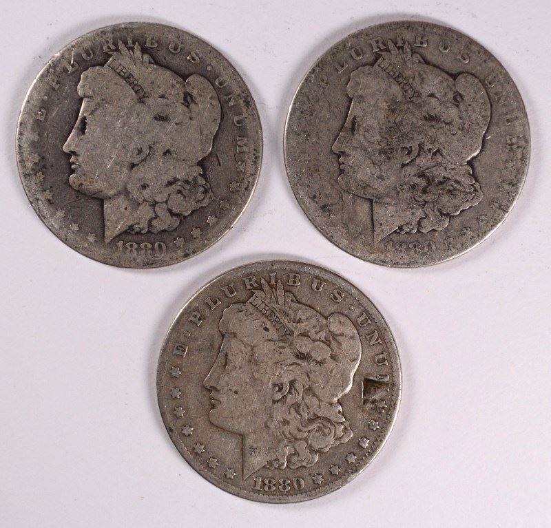 1880-O HAS TRIANGLE SHAPED PUNCH MARK, ESTIMATE, $110.00 TO $130.00