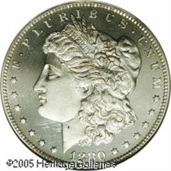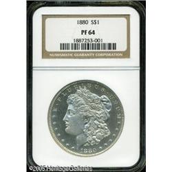 <B>1880<img border='0' src='http://www.heritagecoins.com/images/star.gif' width=10 height=10>$1 PR64 NGC.</B></I> This is a fully brilliant Proof example with lustrous devices framed by mirrored fields. There is no toning on either side of this delightful Proof Morgan Silver Dollar. Lot:10649