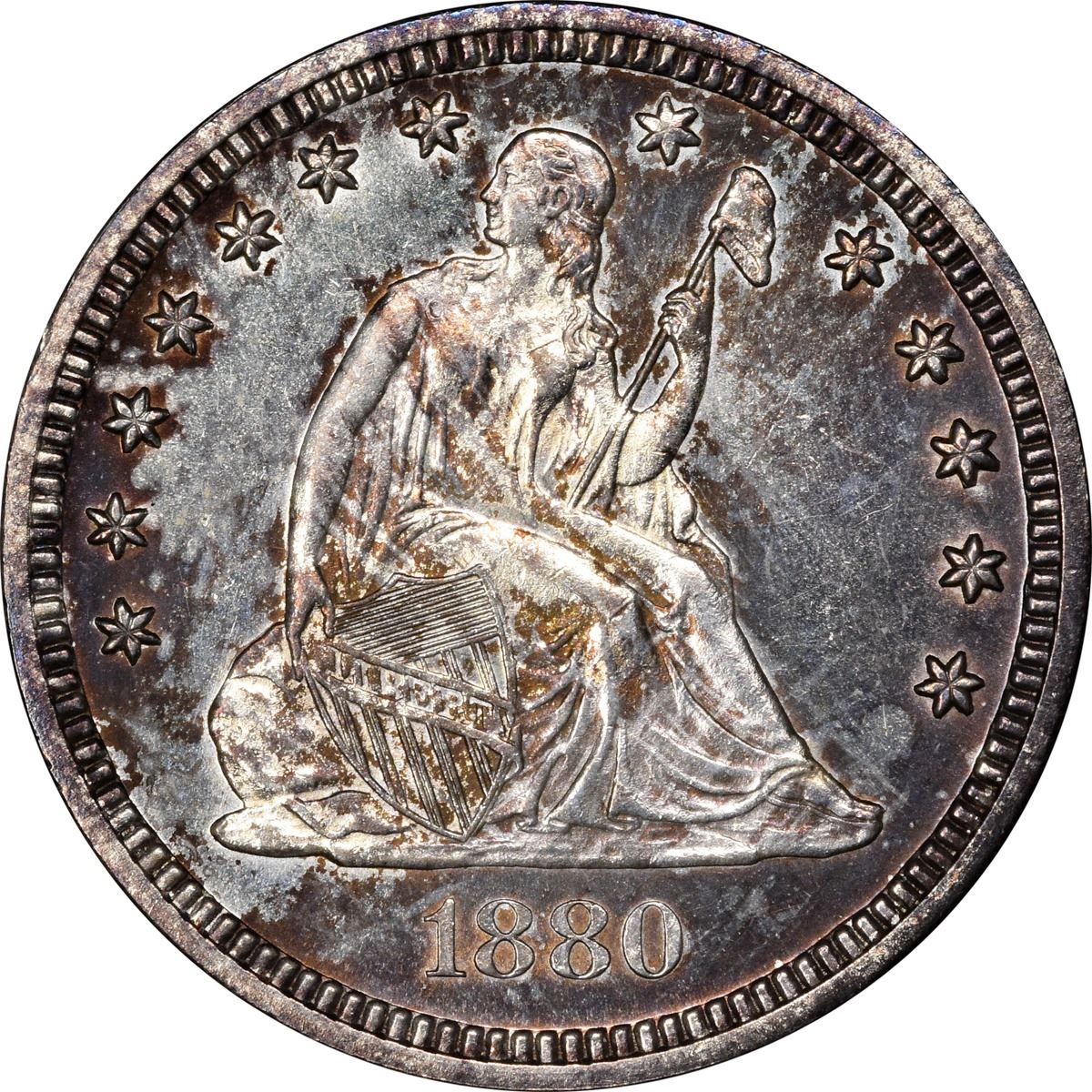 A patchwork quilt of bright mint brilliance and lilac-gold iridescence endorses the obverse, while the reverse is largely of silvery mint brilliance with only a trace here and there of toning. No reverse die markers. PCGS #5581