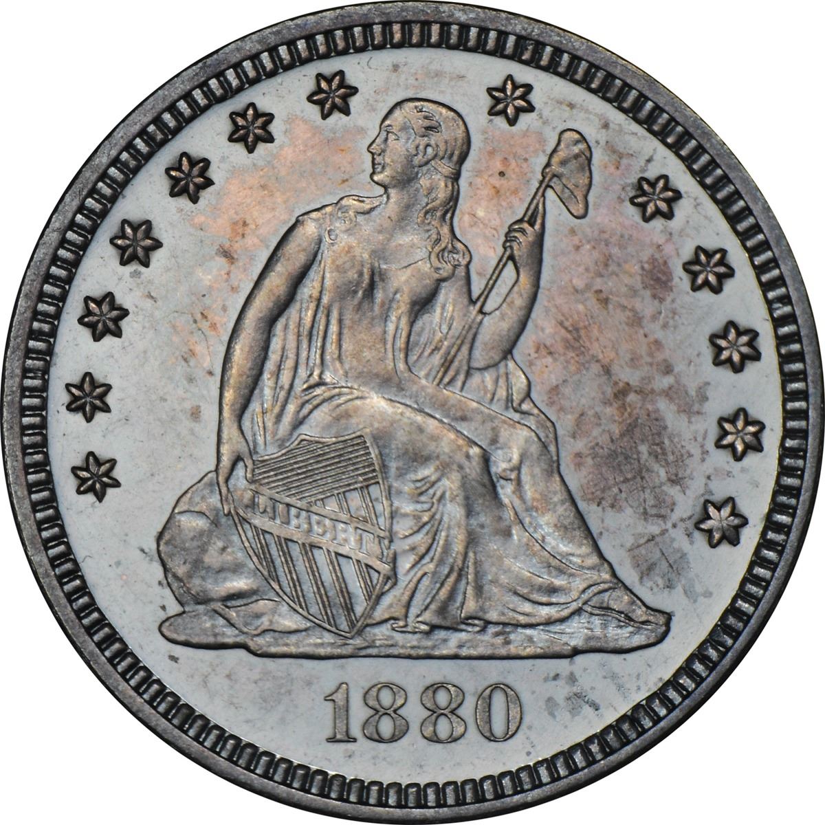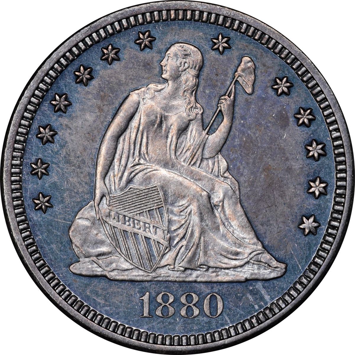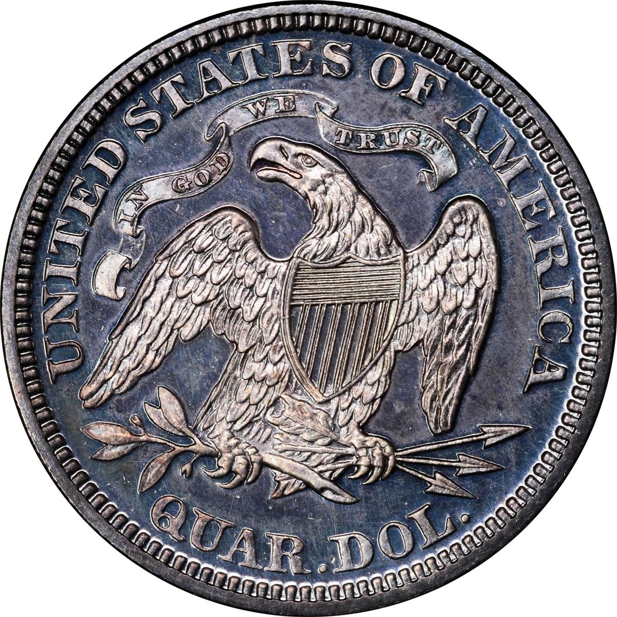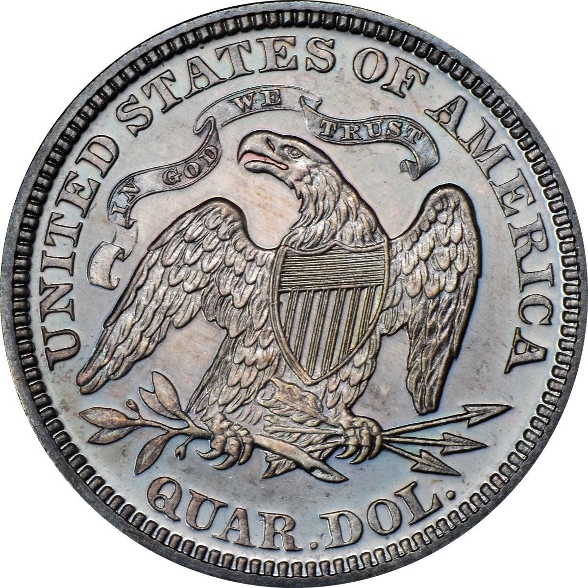 Cameo-like but not designated as such by PCGS. Frosty motifs and reflective fields run the gamut between silver-blue and powder-blue toning highlights. Reverse of 1872, raised horizontal die line at viewer’s left side of shield just below the crossbars; this workhorse reverse was first used in 1872 and saw additional intermittent use for Proof coinage into the early 1880s. Easy on the eye. PCGS #5581
