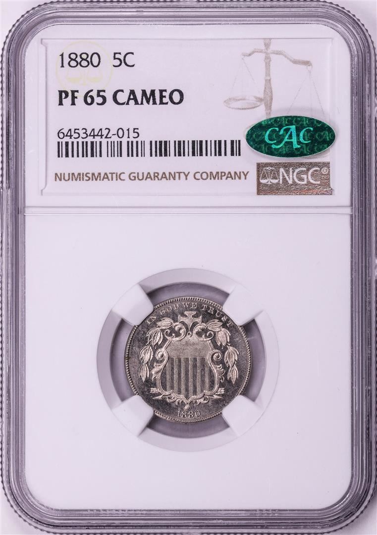 One 1880 Proof Shield Nickel Coin NGC PF65 Cameo CAC. NGC Certified.