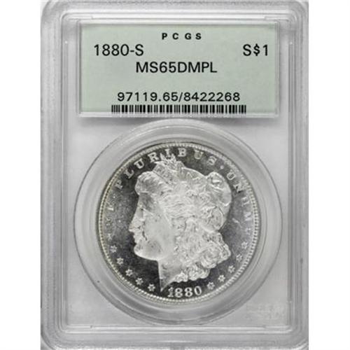 <B>1880-S $1 MS65 Deep Mirror Prooflike PCGS.</B></I> Boldly impressed and flashy, a simply spectacular Gem exemplar from this always-popular type issue. Fathomless mirrors offer wonderful contrast with the thickly frosted devices.<BR><BR><b>Shipping:</b> Coins & Currency (<a target="_blank" href="http://www.heritageauctions.com/common/shipping.php">view shipping information</a>)