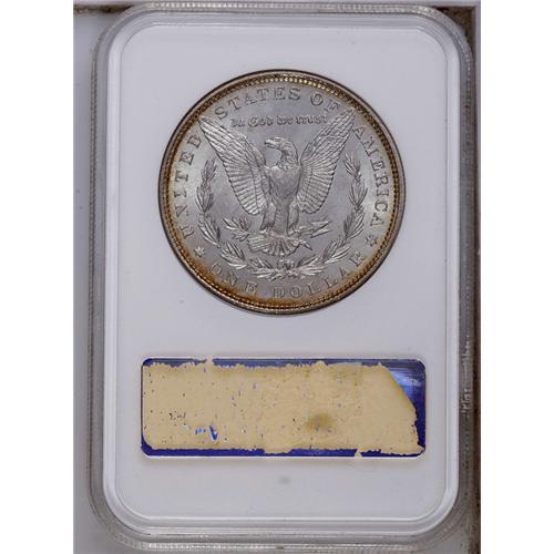 <B>1880<img border='0' src='http://www.heritagecoins.com/images/star.gif' width=10 height=10>$1> MS65 NGC.</B></I> Frosty-white, with the only color appearing as golden toning on the outermost edges. This specimen includes the usual number of bagmarks for the assigned grade.