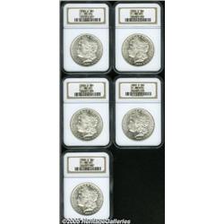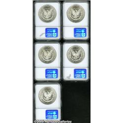 <B>1880-S<img border='0' src='http://www.heritagecoins.com/images/star.gif' width=10 height=10>$1 MS65 NGC,</B></I> brilliant, a crisp strike, faint grazes on the cheek; <B>1880-S MS65 NGC,</B></I> well preserved, untoned; <B>1880-S MS65 NGC,</B></I> booming luster, clean fields; <B>1880-S MS65 NGC,</B></I> intricately struck, brilliant; and an <B>1880-S MS65 NGC,</B></I> well struck, carefully preserved. Four of the five pieces have Medium S mintmarks, one has a Large S mintmark. 5 Coins