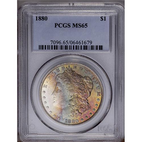 1880 S$1 MS65 PCGS. Beautiful powder-blue, ruby, and l 1880[img border='0' src='http://www.heritagec