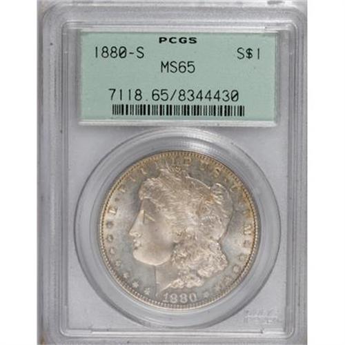 <B>1880-S $1 MS65 PCGS.</B></I> PCGS Population (27849/9746). NGC Census: (25989/11885). Mintage: 8,900,000. Numismedia Wsl. Price for NGC/PCGS coin in MS65: $117. (#7118)<BR><BR><B>Coin Engraver:</B> George T. Morgan<BR><BR><b>Shipping:</b> Coins & Currency (<a target="_blank" href="http://www.heritageauctions.com/common/shipping.php">view shipping information</a>)