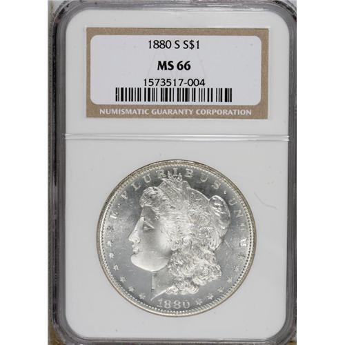 1880-S $1 MS66 NGC. NGC Census: (17568/5354). PCGS