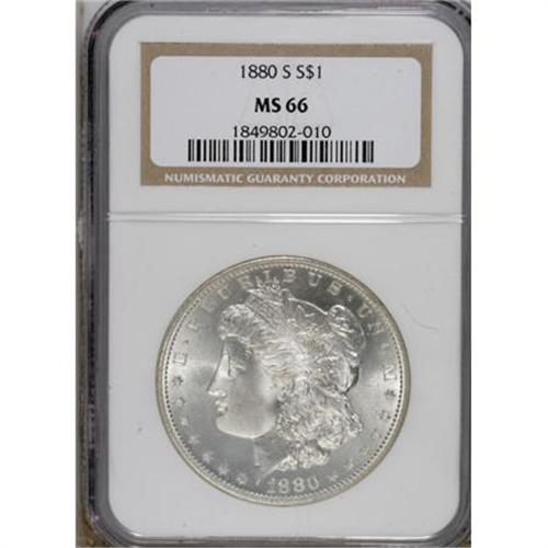 1880-S $1 MS66 NGC. NGC Census: (8837/2687). PCGS Popu
