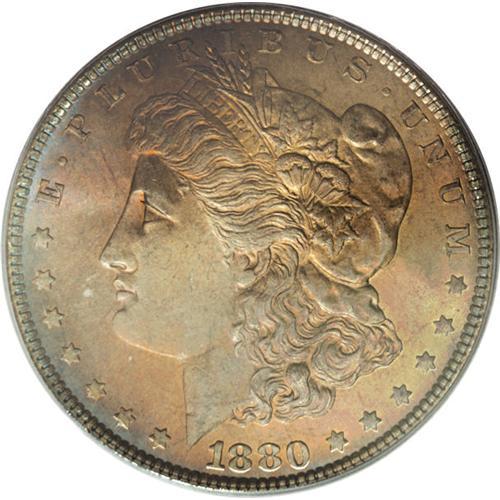 1880 S$1 MS66 PCGS. Deep golden-brown, russet, pewter-