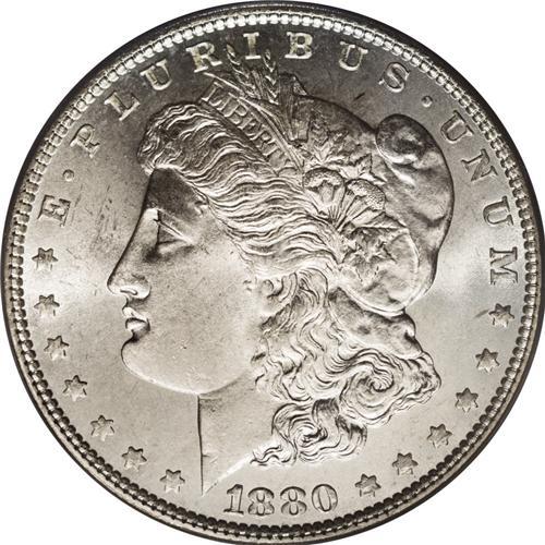 <B>1880 S$1 MS66 PCGS.</B></I> Ex: Ray George. The 1879 and 1880 issues are considered "better" P-mint emissions from early in the Morgan dollar series. While both pieces are available for a price up to MS65 condition, north of that grade they are quite elusive. Both number in the triple-digit populations at PCGS in MS65, but in the double digits in MS66. PCGS has currently graded only 70 MS66 examples of the 1880, with none finer (11/06). This brilliant silver-white example offers radiant cartwheel luster, with a decent strike that separates most of the hair over the ear, and no singular impairments. A lovely coin, statistically and practically unimprovable.<BR><I>From The Cocoa Beach Collection.</B></I><BR><BR><b>Shipping:</b> Coin/Currency (<a target="_blank" href="http://www.heritageauctions.com/common/shipping.php">view shipping information</a>)