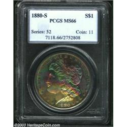 <TABLE cellSpacing=0 cellPadding=0 width="100%" bgColor=#000000 border=0><TBODY><TR><TD width="100%"><TABLE cellSpacing=1 cellPadding=3 width="100%" border=0><TBODY><TR><TD width="100%" bgColor=#79735c><FONT face=arial color=#ffffff size=3><B>Description</B> </FONT></TD></TR><TR><TD width="100%" bgColor=#ffffff><FONT face=arial size=2><B>1880-S $1 MS66 PCGS.</B></I> Magnificent alternating circular bands of jade-green, reddish-violet, and honey-gold colorations are seen over most of the obverse, the reverse is mostly untoned with a thin golden peripheral ring. Fully defined and frosty overall.<BR><I>Ex: The Benson Collection, Part II (Ira & Larry Goldberg, 9/2002), lot 588, where it realized $747.50.</B></I> </FONT></TD></TR></TBODY></TABLE></TD></TR></TBODY></TABLE><BR><A name=PricesRealized></A><TABLE cellSpacing=0 cellPadding=0 width="100%" bgColor=#000000 border=0><TBODY><TR><TD width="100%"><TABLE cellSpacing=1 cellPadding=3 width="100%" border=0><TBODY><TR><TD width="100%" bgColor=#79735c><A name=PR><FONT face=arial color=#ffffff size=3><B>Previous Prices from Heritage Auctions</B> </FONT></A></TD></TR><TR><TD bgColor=#f6f6ed><TABLE cellSpacing=0 cellPadding=0 width="100%" border=1><TBODY><TR><TD align=middle width="33%"><B>Date</B></TD><TD align=middle width="33%"><B>Service</B></TD><TD align=middle width="33%"><B>Price</B></TD></TR><TR bgColor=whitesmoke><TD width="33%"><B>06/19/2001</B></TD><TD width="33%">NGC</TD><TD width="33%">$240.00</TD></TR><TR bgColor=whitesmoke><TD width="33%"><B>06/19/2001</B></TD><TD width="33%">NGC</TD><TD width="33%">$240.00</TD></TR><TR bgColor=whitesmoke><TD width="33%"><B>06/12/2001</B></TD><TD width="33%">NGC</TD><TD width="33%">$145.00</TD></TR><TR bgColor=whitesmoke><TD width="33%"><B>06/12/2001</B></TD><TD width="33%">NGC</TD><TD width="33%">$145.00</TD></TR><TR bgColor=whitesmoke><TD width="33%"><B>06/12/2001</B></TD><TD width="33%">NGC</TD><TD width="33%">$145.00</TD></TR><TR bgColor=whitesmoke><TD width="33%"><B>03/16/1996</B></TD><TD width="33%">NGC</TD><TD width="33%">$209.00</TD></TR><TR bgColor=whitesmoke><TD width="33%"><B>03/16/1996</B></TD><TD width="33%">NGC</TD><TD width="33%">$209.00</TD></TR><TR bgColor=whitesmoke><TD width="33%"><B>11/07/2000</B></TD><TD width="33%">NGC</TD><TD width="33%">$160.00</TD></TR><TR bgColor=whitesmoke><TD width="33%"><B>11/07/2000</B></TD><TD width="33%">NGC</TD><TD width="33%">$160.00</TD></TR><TR bgColor=whitesmoke><TD width="33%"><B>11/07/2000</B></TD><TD width="33%">NGC</TD><TD width="33%">$160.00</TD></TR><TR bgColor=whitesmoke><TD width="33%"><B>02/24/1995</B></TD><TD width="33%">NGC</TD><TD width="33%">$220.00</TD></TR><TR bgColor=whitesmoke><TD width="33%"><B>02/24/1995</B></TD><TD width="33%">NGC</TD><TD width="33%">$220.00</TD></TR><TR bgColor=whitesmoke><TD width="33%"><B>06/04/1993</B></TD><TD width="33%">NGC</TD><TD width="33%">$632.50</TD></TR><TR bgColor=whitesmoke><TD width="33%"><B>06/04/1993</B></TD><TD width="33%">NGC</TD><TD width="33%">$632.50</TD></TR><TR bgColor=whitesmoke><TD width="33%"><B>06/04/1993</B></TD><TD width="33%">NGC</TD><TD width="33%">$632.50</TD></TR><TR bgColor=whitesmoke><TD width="33%"><B>01/28/2003</B></TD><TD width="33%">NGC</TD><TD width="33%">$161.00</TD></TR><TR bgColor=whitesmoke><TD width="33%"><B>01/28/2003</B></TD><TD width="33%">NGC</TD><TD width="33%">$161.00</TD></TR><TR bgColor=whitesmoke><TD width="33%"><B>07/01/2003</B></TD><TD width="33%">NGC</TD><TD width="33%">$184.00</TD></TR><TR bgColor=whitesmoke><TD width="33%"><B>07/01/2003</B></TD><TD width="33%">NGC</TD><TD width="33%">$184.00</TD></TR><TR bgColor=whitesmoke><TD width="33%"><B>07/01/2003</B></TD><TD width="33%">NGC</TD><TD width="33%">$184.00</TD></TR><TR bgColor=whitesmoke><TD width="33%"><B>04/01/2003</B></TD><TD width="33%">NGC</TD><TD width="33%">$184.00</TD></TR><TR bgColor=whitesmoke><TD width="33%"><B>04/01/2003</B></TD><TD width="33%">NGC</TD><TD width="33%">$184.00</TD></TR><TR bgColor=whitesmoke><TD width="33%"><B>03/01/2003</B></TD><TD width="33%">NGC</TD><TD width="33%">$546.25</TD></TR><TR bgColor=whitesmoke><TD width="33%"><B>03/01/2003</B></TD><TD width="33%">NGC</TD><TD width="33%">$546.25</TD></TR><TR bgColor=whitesmoke><TD width="33%"><B>03/01/2003</B></TD><TD width="33%">NGC</TD><TD width="33%">$546.25</TD></TR><TR bgColor=whitesmoke><TD width="33%"><B>03/01/2003</B></TD><TD width="33%">NGC</TD><TD width="33%">$920.00</TD></TR><TR bgColor=whitesmoke><TD width="33%"><B>03/01/2003</B></TD><TD width="33%">NGC</TD><TD width="33%">$920.00</TD></TR><TR bgColor=whitesmoke><TD width="33%"><B>05/03/2003</B></TD><TD width="33%">NGC</TD><TD width="33%">$218.50</TD></TR><TR bgColor=whitesmoke><TD width="33%"><B>05/03/2003</B></TD><TD width="33%">NGC</TD><TD width="33%">$218.50</TD></TR><TR bgColor=whitesmoke><TD width="33%"><B>05/03/2003</B></TD><TD width="33%">NGC</TD><TD width="33%">$218.50</TD></TR><TR bgColor=whitesmoke><TD width="33%"><B>06/02/2003</B></TD><TD width="33%">ANACS</TD><TD width="33%">$149.50</TD></TR><TR bgColor=whitesmoke><TD width="33%"><B>06/02/2003</B></TD><TD width="33%">ANACS</TD><TD width="33%">$149.50</TD></TR><TR bgColor=whitesmoke><TD width="33%"><B>03/21/2000</B></TD><TD width="33%">ANACS</TD><TD width="33%">$140.00</TD></TR><TR bgColor=whitesmoke><TD width="33%"><B>03/21/2000</B></TD><TD width="33%">ANACS</TD><TD width="33%">$140.00</TD></TR><TR bgColor=whitesmoke><TD width="33%"><B>03/21/2000</B></TD><TD width="33%">ANACS</TD><TD width="33%">$140.00</TD></TR><TR bgColor=whitesmoke><TD width="33%"><B>06/06/1997</B></TD><TD width="33%">ANACS</TD><TD width="33%">$172.50</TD></TR><TR bgColor=whitesmoke><TD width="33%"><B>06/06/1997</B></TD><TD width="33%">ANACS</TD><TD width="33%">$172.50</TD></TR><TR bgColor=whitesmoke><TD width="33%"><B>08/06/2003</B></TD><TD width="33%">ANACS</TD><TD width="33%">$178.25</TD></TR><TR bgColor=whitesmoke><TD width="33%"><B>08/06/2003</B></TD><TD width="33%">ANACS</TD><TD width="33%">$178.25</TD></TR><TR bgColor=whites