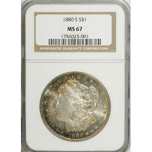 1880-S $1 MS67 NGC. NGC Census: (2451/220). PCGS P