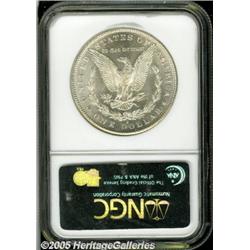 <B>1880-S<img border='0' src='http://www.heritagecoins.com/images/star.gif' width=10 height=10>$1 MS67 NGC.</B></I> The design elements are sharply struck, and reveal some light tan color on the central devices of each side. The surfaces are lovingly preserved, showing no distracting marks.