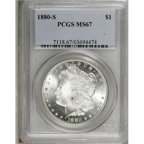 <B>1880-S $1 MS67 PCGS.</B></I> The Morgan dollar connoisseur will appreciate this Superb Gem with its brilliant and frosty silver surfaces. Both sides are sharply detailed as usual for this issue.<BR><BR><B>Coin Engraver:</B> George T. Morgan<BR><BR><b>Shipping:</b> Coins & Currency (<a target="_blank" href="http://www.heritageauctions.com/common/shipping.php">view shipping information</a>)