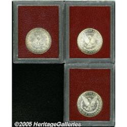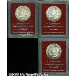 <B>1880-S<img border='0' src='http://www.heritagecoins.com/images/star.gif' width=10 height=10>$1 Morgan Dollar MS65 Paramount International (MS63),</B></I> Ex: Redfield, Medium S, the lustrous and brilliant centers are framed by golden-brown color; <B>1881-S Morgan Dollar MS65 Paramount International (MS63),</B></I> Ex: Redfield, lustrous and intricately struck but wispy grazes are present; and an <B>1897 Morgan Dollar MS65 Paramount International (MS64),</B></I> Ex: Redfield, original and bold, pearl-gray, tan, and turquoise colors, the holder has a couple of cracks. 3 coins