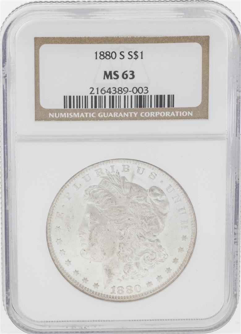 One 1880-S $1 Morgan Silver Dollar Coin NGC MS63. NGC Certified.
