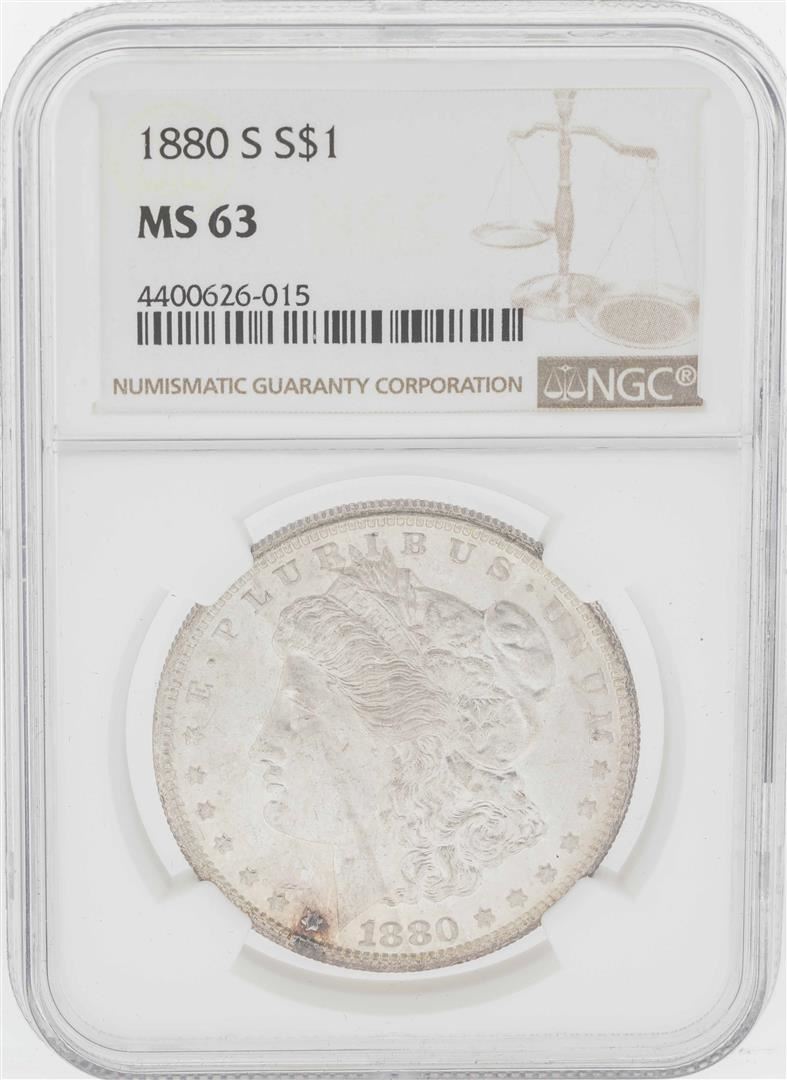 One 1880-S $1 Morgan Silver Dollar Coin NGC MS63. NGC Certified.