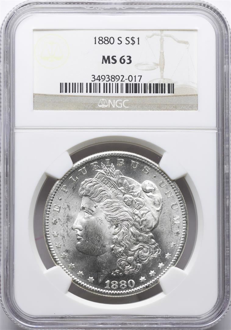 One 1880-S $1 Morgan Silver Dollar Coin NGC MS63. NGC Certified.