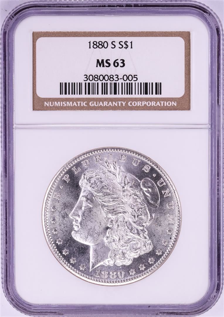 One 1880-S $1 Morgan Silver Dollar Coin NGC MS63. NGC Certified.