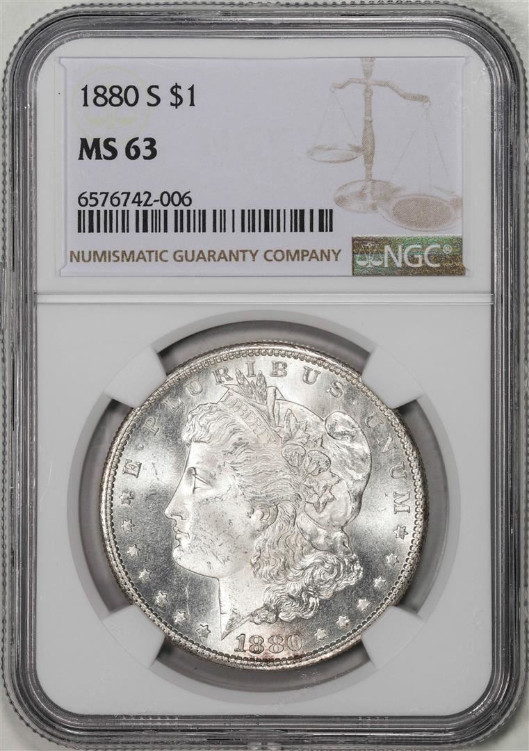 One 1880-S $1 Morgan Silver Dollar Coin NGC MS63. NGC Certified.