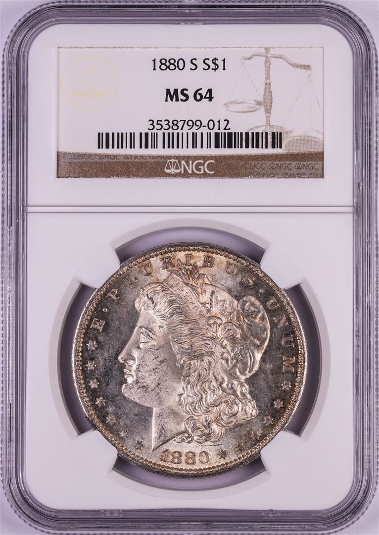 One 1880-S $1 Morgan Silver Dollar Coin NGC MS64. NGC Certified.