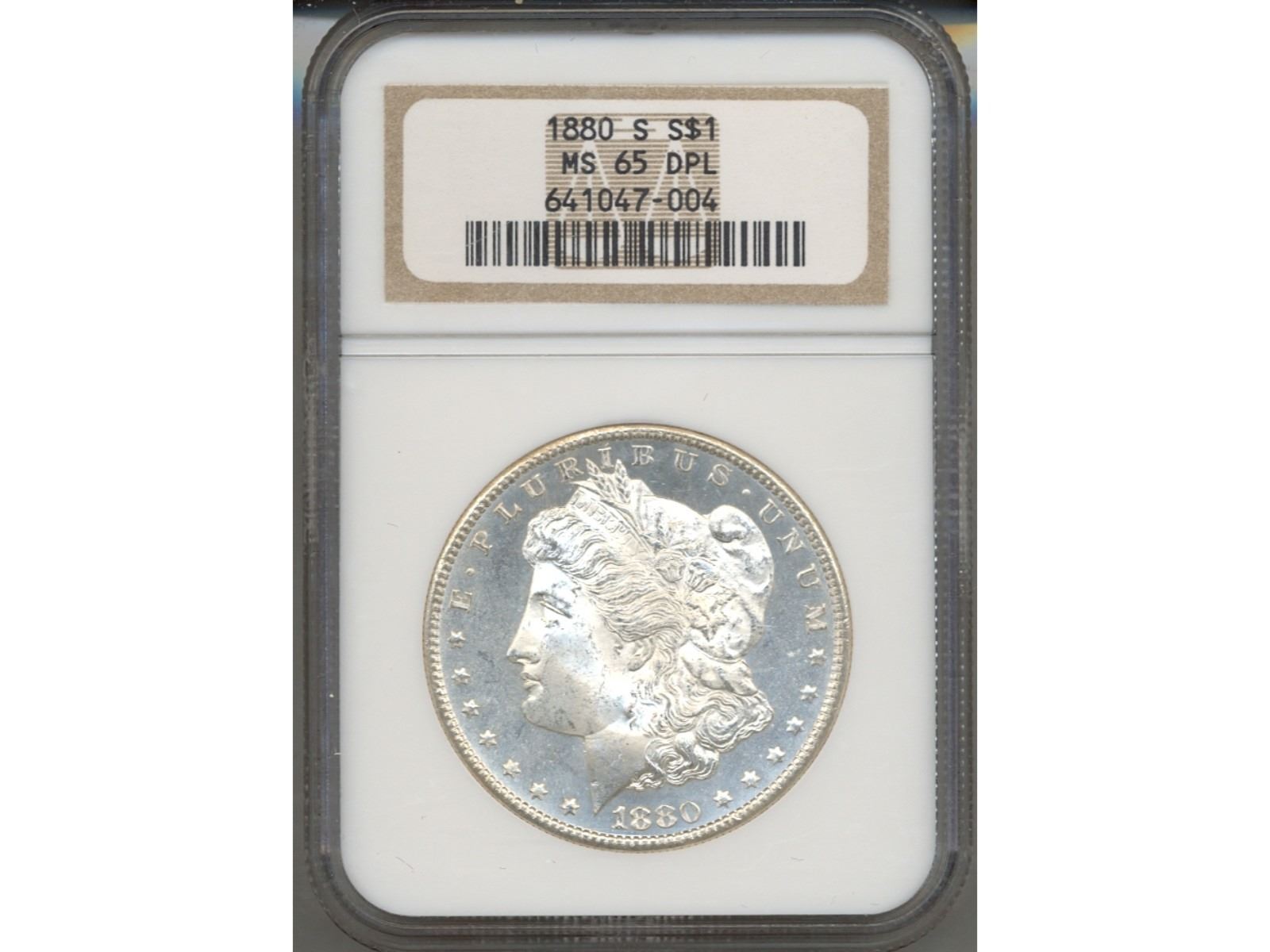 One 1880-S $1 Morgan Silver Dollar Coin NGC MS65 DPL.