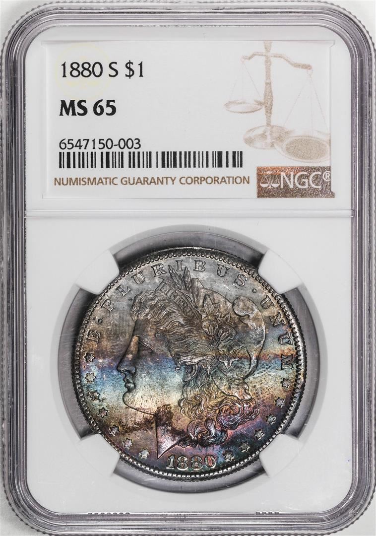 One 1880-S $1 Morgan Silver Dollar Coin NGC MS65 Great Color. NGC Certified.