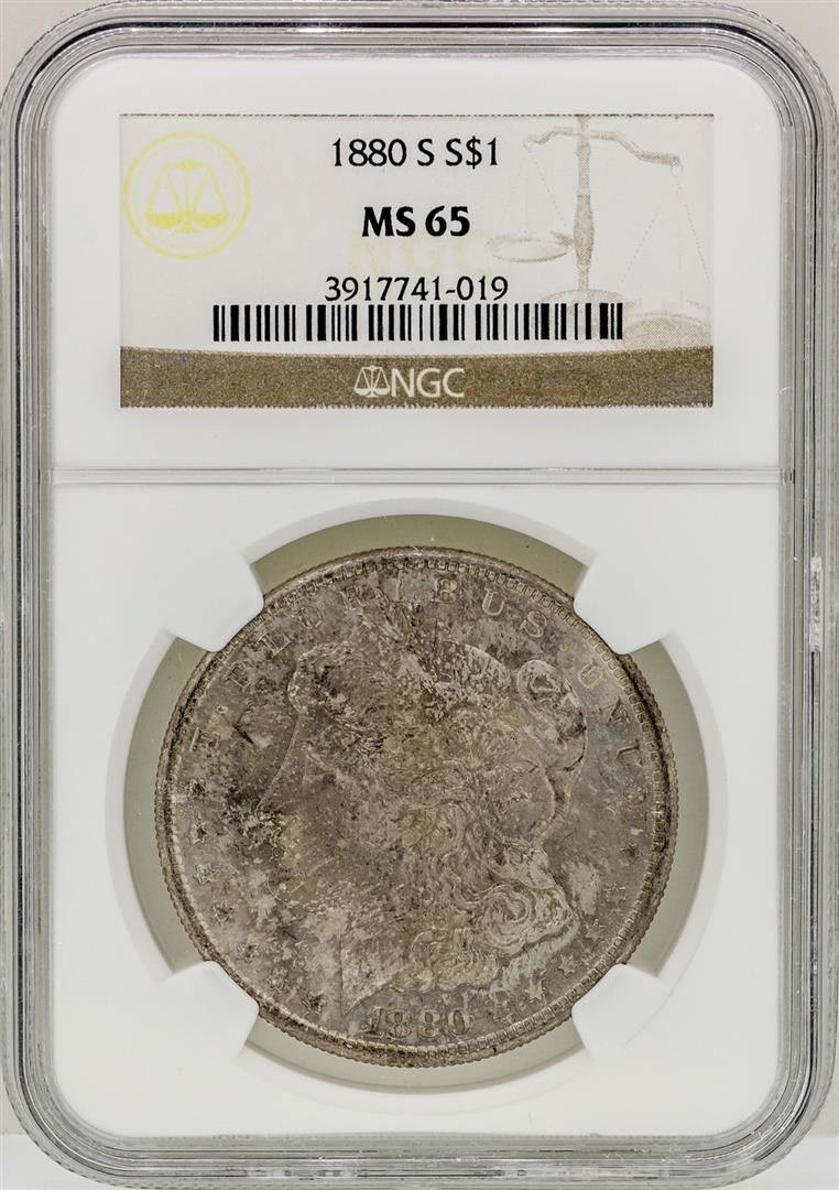 One 1880-S $1 Morgan Silver Dollar Coin NGC MS65. NGC Certified.