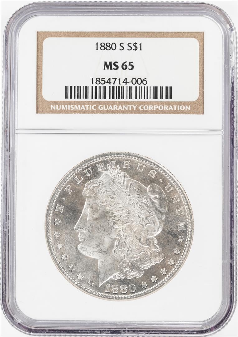 One 1880-S $1 Morgan Silver Dollar Coin NGC MS65. NGC Certified.