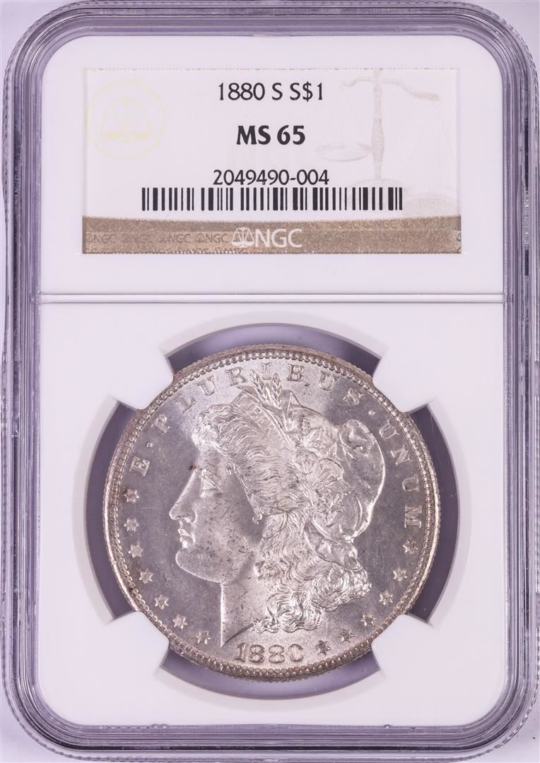 One 1880-S $1 Morgan Silver Dollar Coin NGC MS65. NGC Certified.
