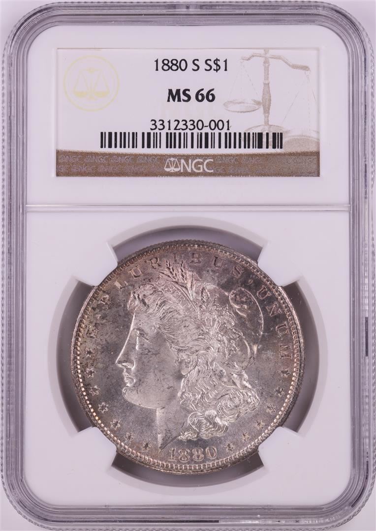 One 1880-S $1 Morgan Silver Dollar Coin NGC MS66. NGC Certified.