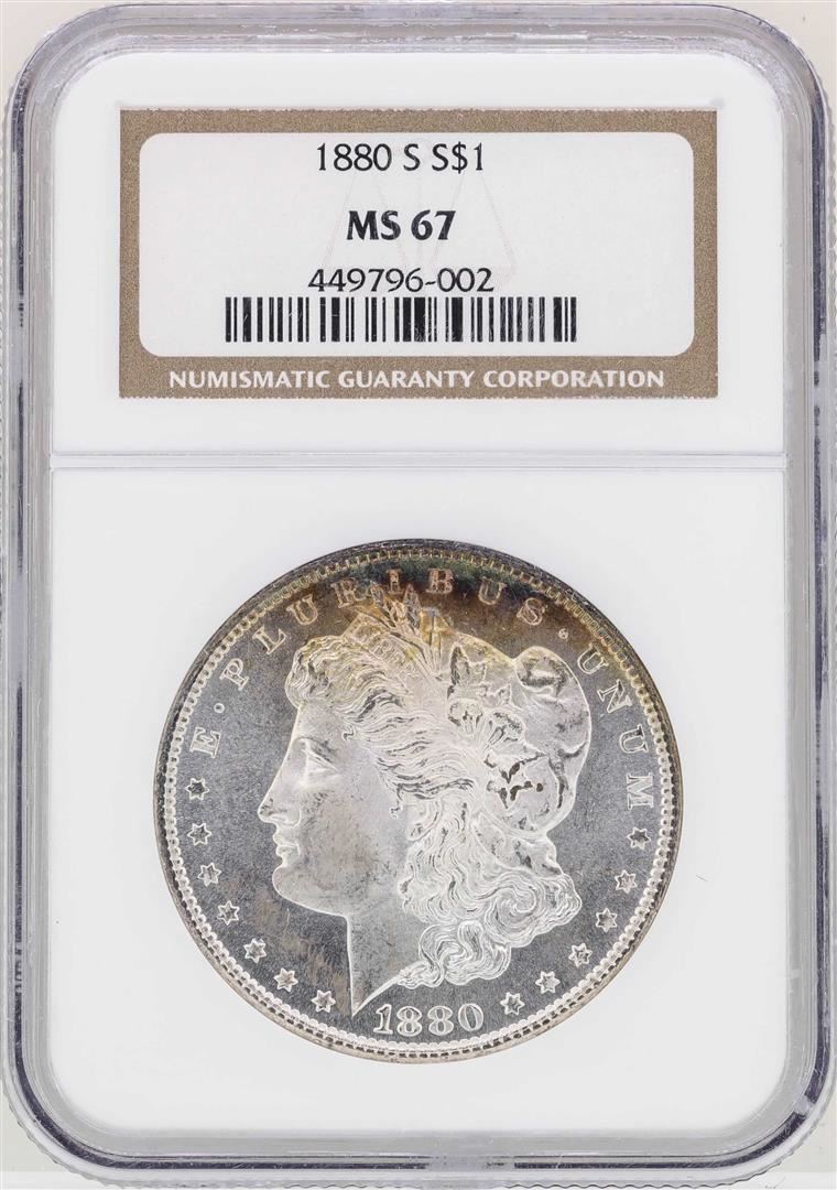 One 1880-S $1 Morgan Silver Dollar Coin NGC MS67. NGC Certified.